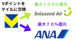 Vポイントから高効率でソラシドエアやANAなどの航空券に変えることができます。